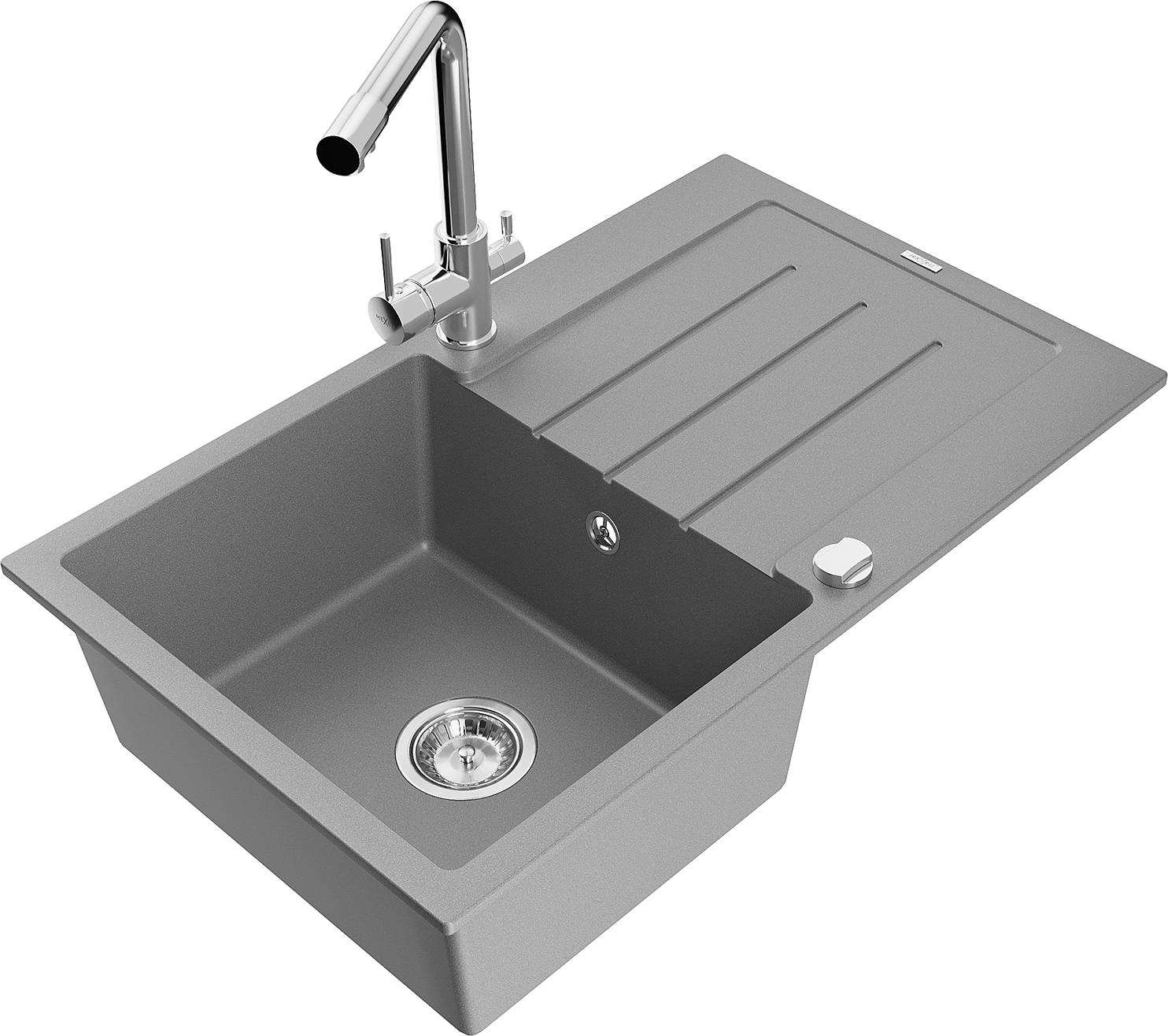 Mexen Bruno lavello in granito a 1 vasca con gocciolatoio e rubinetto da cucina Duero, grigio - 6513-71-671600-00