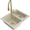 Mexen Carlos lavello in granito a 1,5 vasca con rubinetto da cucina Savita, nero/oro metallizzato - 6518-75-672601-50-B