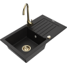 Mexen Pablo lavello in granito a 1 vasca con sgocciolatoio e rubinetto da cucina Telma, nero/argento - 6510-73-670200-50