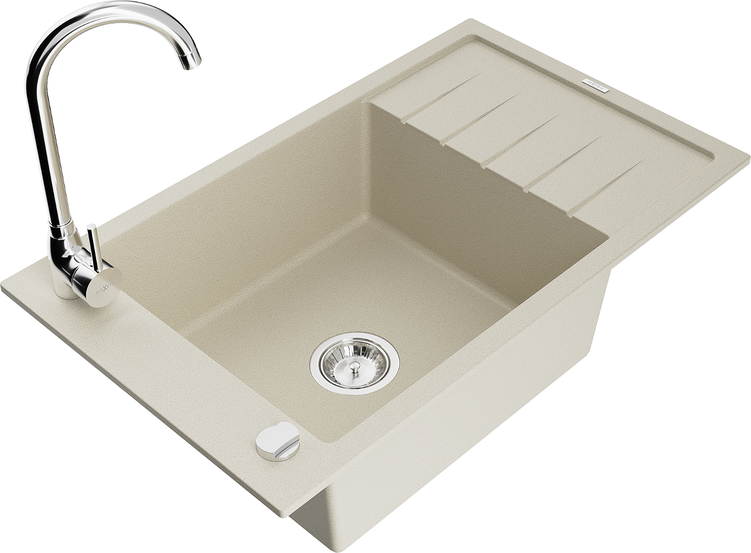 Mexen Elias lavello in granito 1-vasca con sgocciolatoio e rubinetto da cucina Telma, beige - 6511-69-670200-00