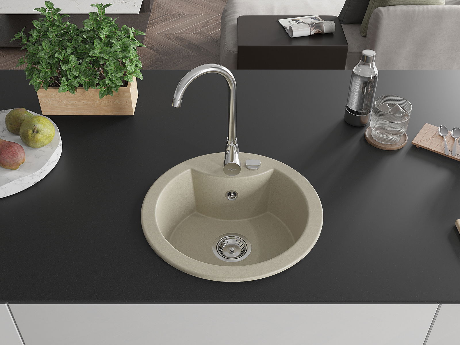 Mexen Diego lavello in granito monocomparto con rubinetto da cucina Telma, beige - 6512-69-670200-00