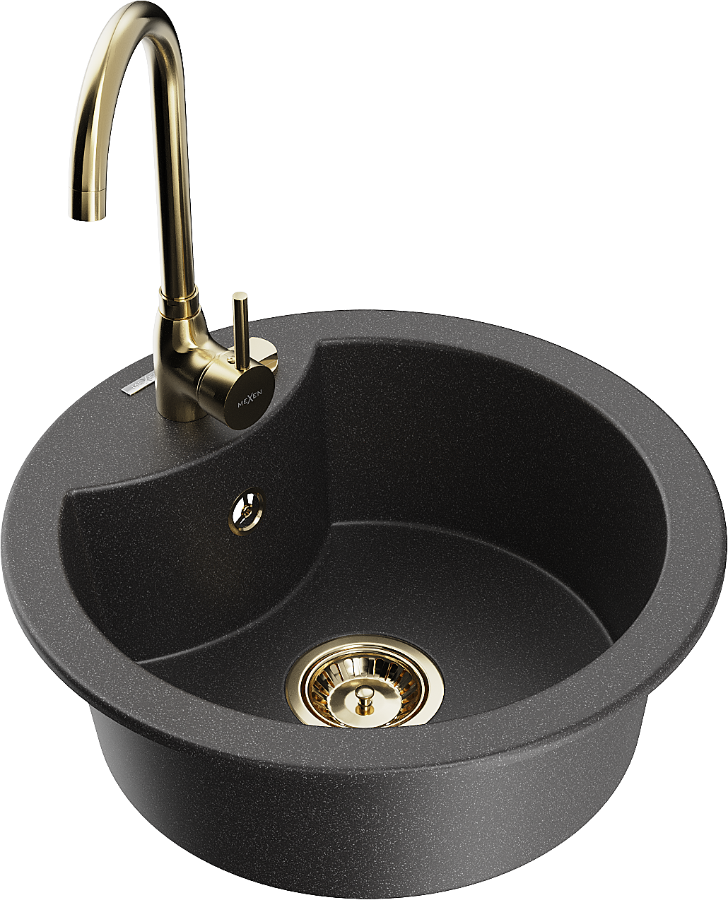 Mexen Diego lavello in granito a 1 vasca con miscelatore da cucina Telma, nero maculato - 6512-76-670200-50