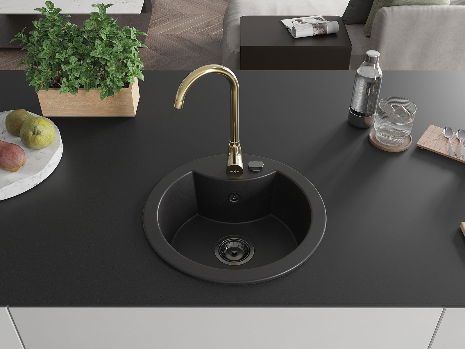 Mexen Diego lavello in granito a 1 vasca con rubinetto da cucina Telma, nero - 6512-77-670200-50-B