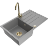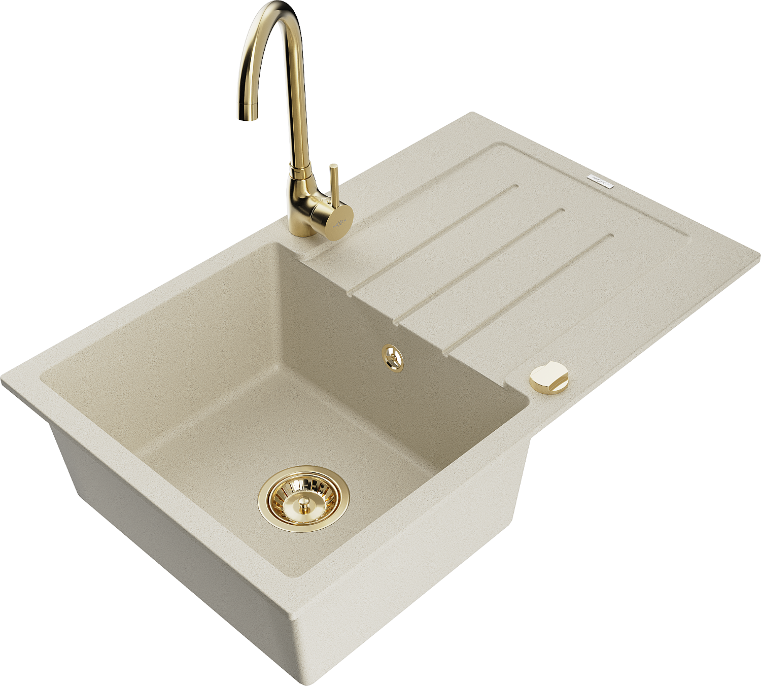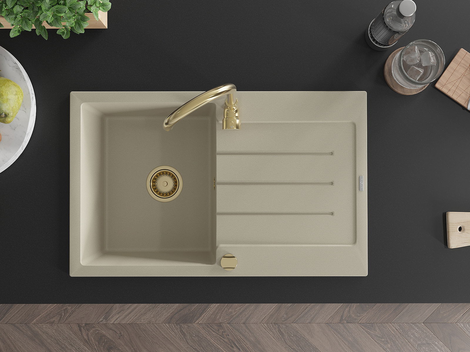 Mexen Bruno lavello da cucina in granito 1 vasca con sgocciolatoio e rubinetto Telma, beige - 6513-69-670200-50
