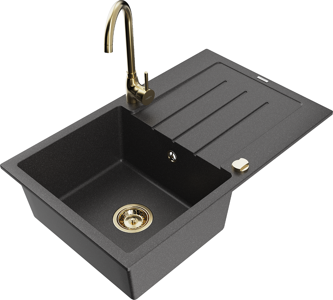 Il lavello è realizzato in granito di alta qualità. Rappresenta un complemento elegante e, soprattutto, pratico per ogni cucina, indipendentemente dal suo stile. L'alta qualità e la durata del granito garantiscono un utilizzo che dura per molti anni.