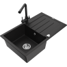 Mexen Bruno lavello in granito a 1 vasca con sgocciolatoio e rubinetto da cucina Duero, nero/argento metallizzato