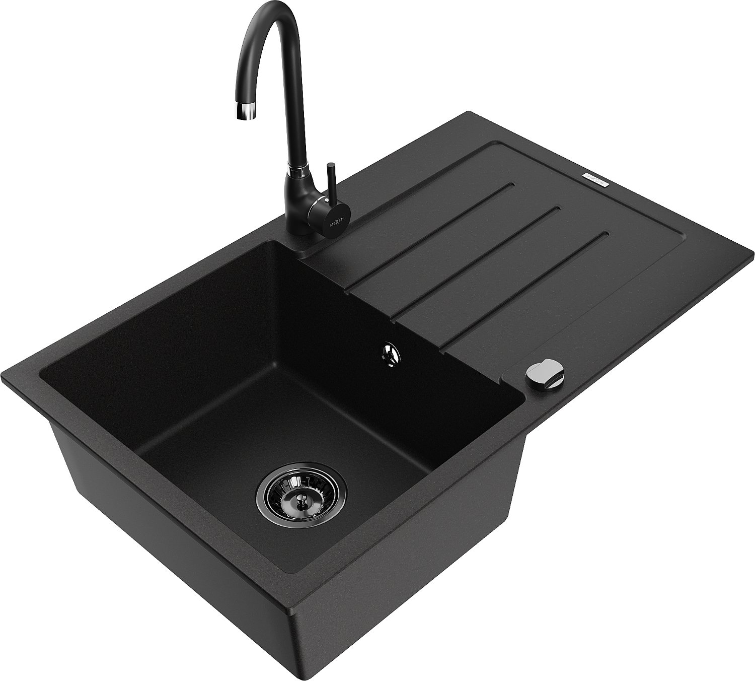 Mexen Bruno lavello in granito con 1 vasca e sgocciolatoio e rubinetto da cucina Telma, nero - 6513-77-670200-70-B