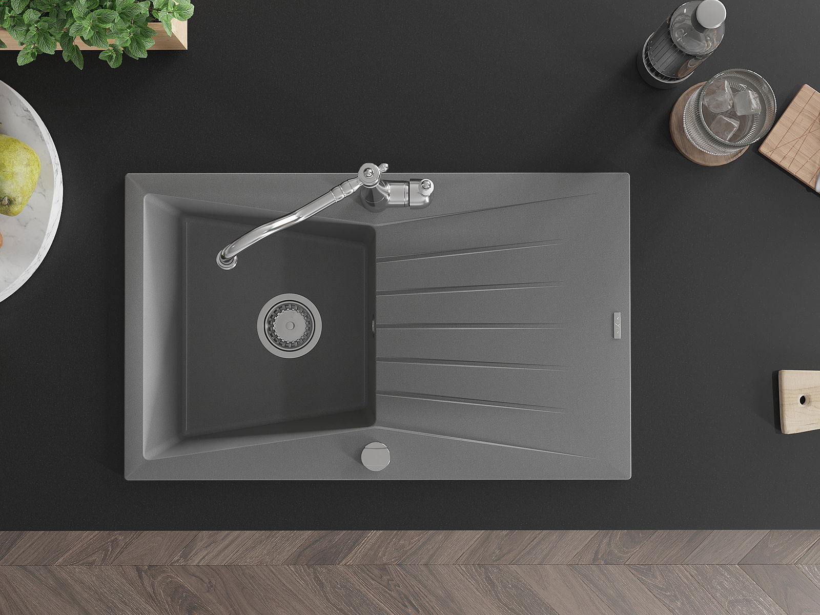 Mexen Cesar lavello in granito a 1 vasca con sgocciolatoio e miscelatore da cucina Carla, grigio - 6514-71-670700-00