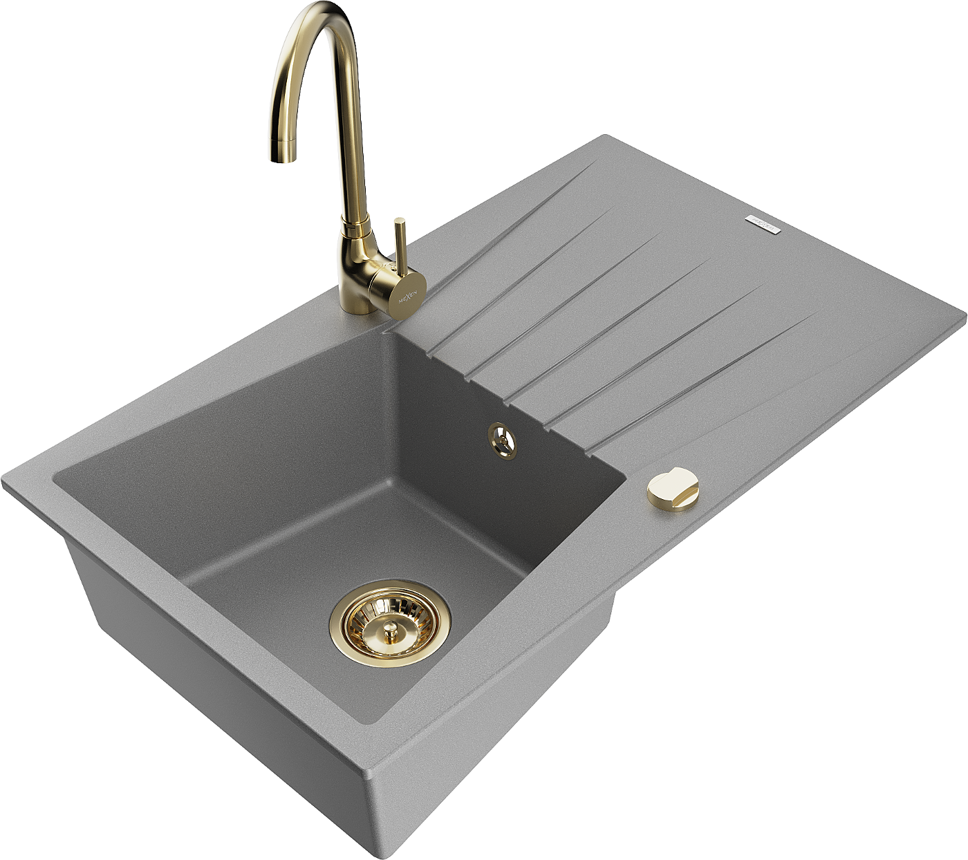 Mexen Cesar lavello in granito a 1 vasca con sgocciolatoio e miscelatore da cucina Telma, grigio - 6514-71-670200-50