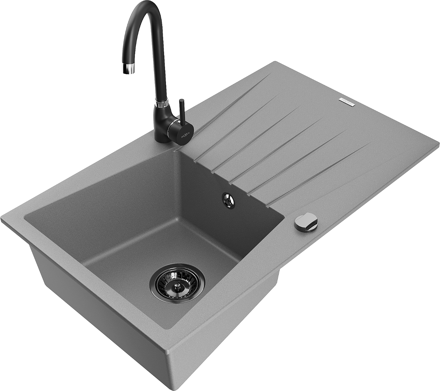 Mexen Cesar lavello in granito a 1 vasca con gocciolatoio e rubinetto da cucina Telma, grigio - 6514-71-670200-70-B