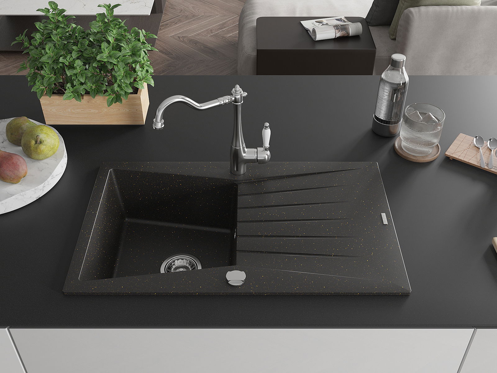 La scelta di un lavello con sgocciolatoio è una soluzione pratica che consente di riporre piatti, verdure e frutta lavati. Lo sgocciolatoio facilita la cucina quotidiana e aiuta a mantenere l'ordine in cucina.