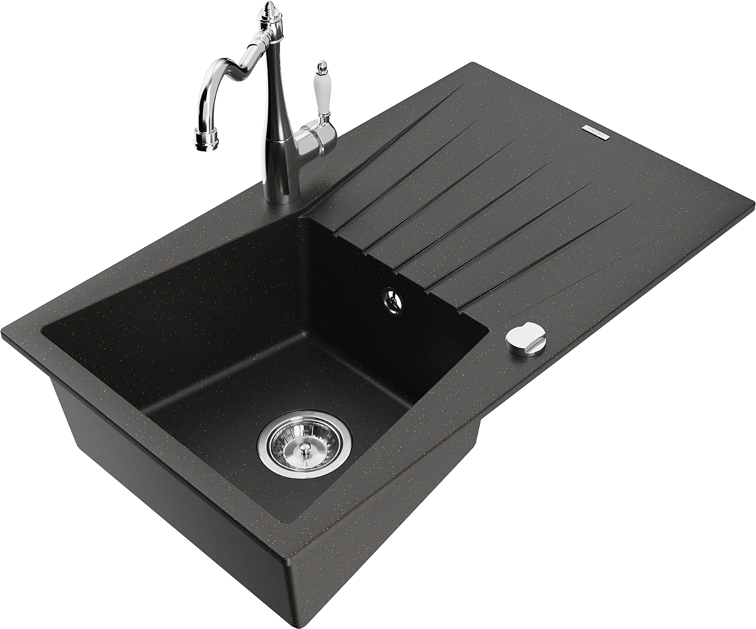 Mexen Cesar lavello in granito a 1 vasca con scolapiatti e rubinetto da cucina Carla, nero/oro metallizzato - 6514-75-670700-00