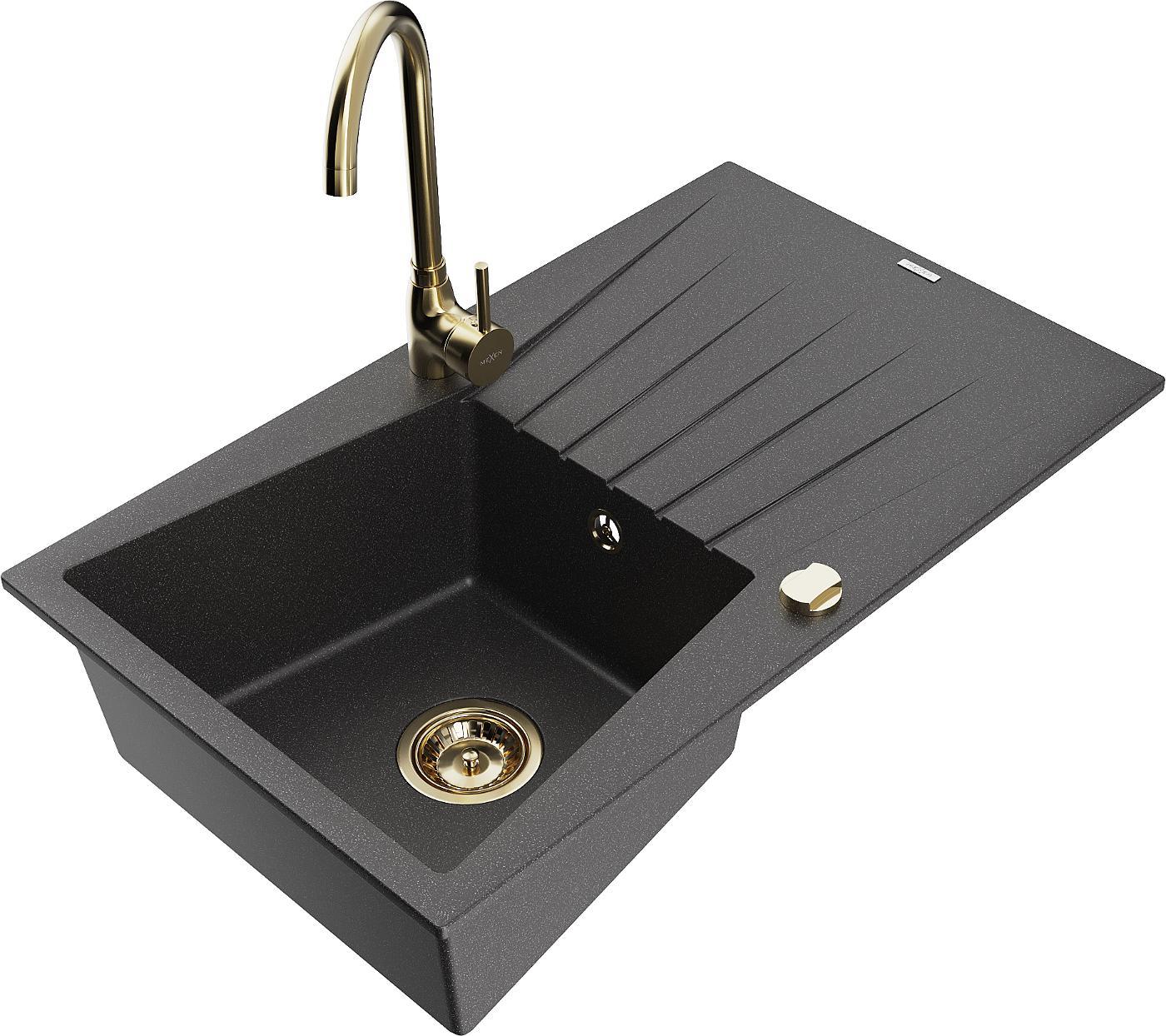 Mexen Cesar lavello in granito a 1 vasca con scolapiatti e rubinetto da cucina Telma, nero maculato - 6514-76-670200-50