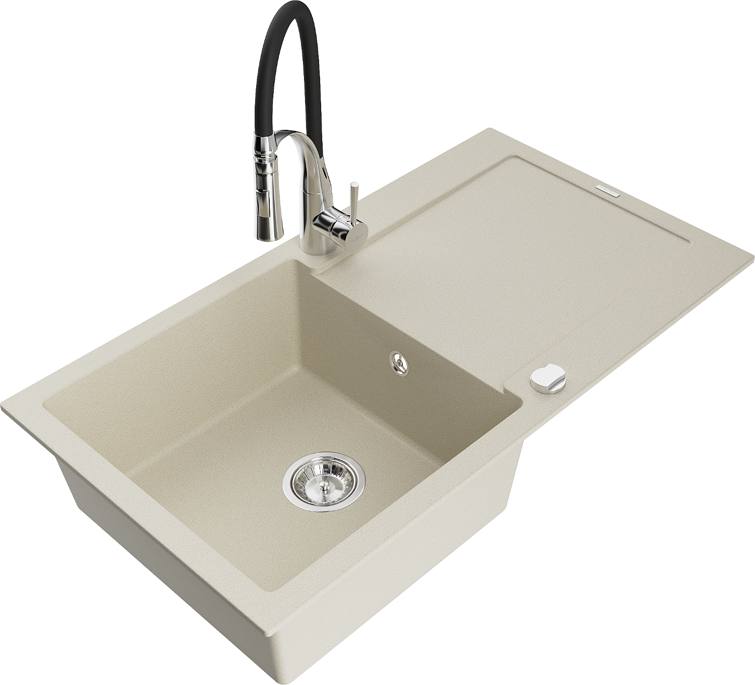 Mexen Leo lavello in granito a 1 vasca con scolapiatti e rubinetto da cucina Aster, beige - 6501-69-73450-07