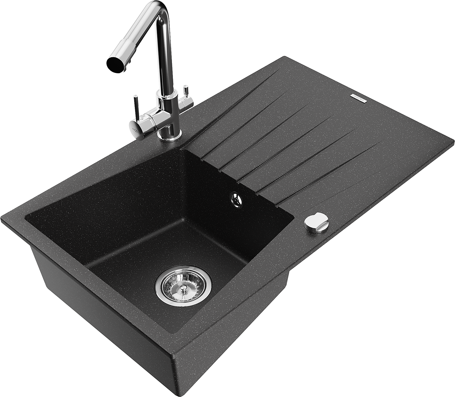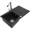 Mexen Cesar lavello in granito a 1 vasca con sgocciolatoio e rubinetto da cucina Duero, nero/argento metallizzato