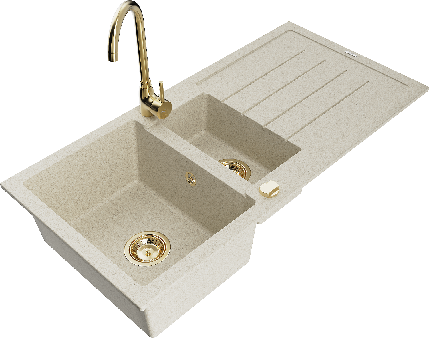Mexen Andres lavello in granito 1,5 vasca con scolapiatti e miscelatore cucina Telma, beige - 6515-69-670200-50