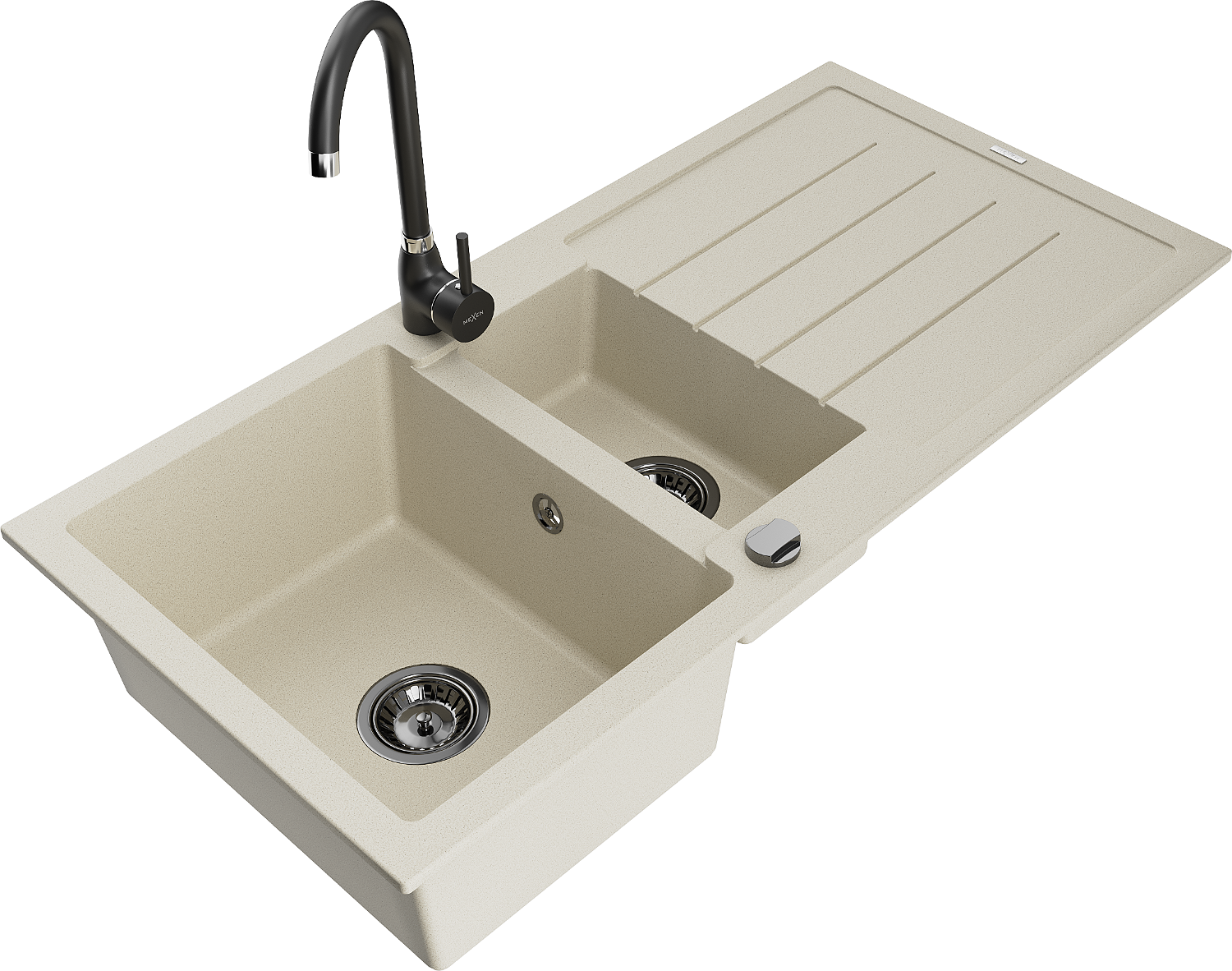 Mexen Andres lavello in granito 1,5 vasca con gocciolatoio e rubinetto da cucina Telma, beige - 6515-69-670200-70