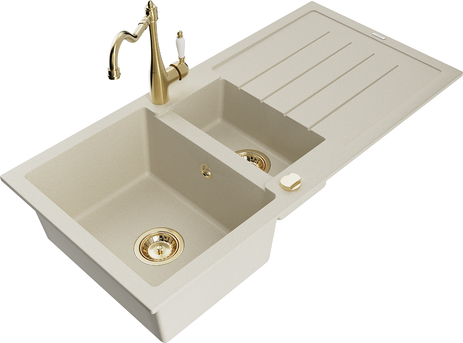 Mexen Andres lavello in granito 1,5 vasche con sgocciolatoio e miscelatore cucina Carla, beige - 6515-69-670700-50