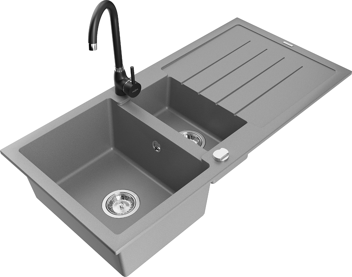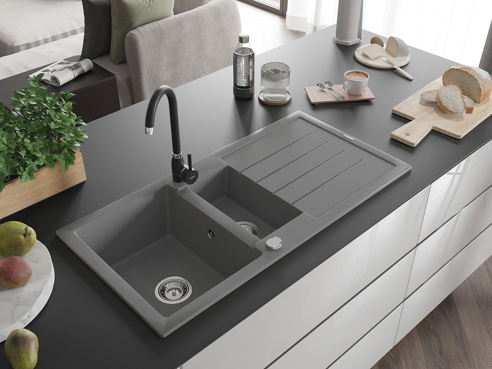 Mexen Andres lavello in granito 1,5 vasca con scolapiatti e rubinetto da cucina Telma, grigio - 6515-71-670200-70