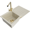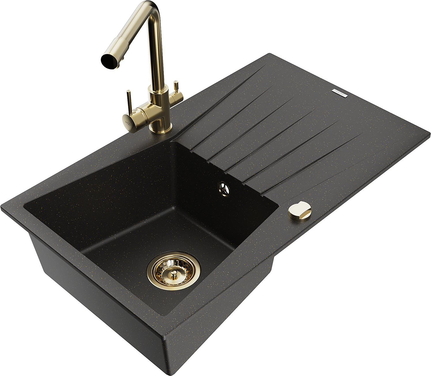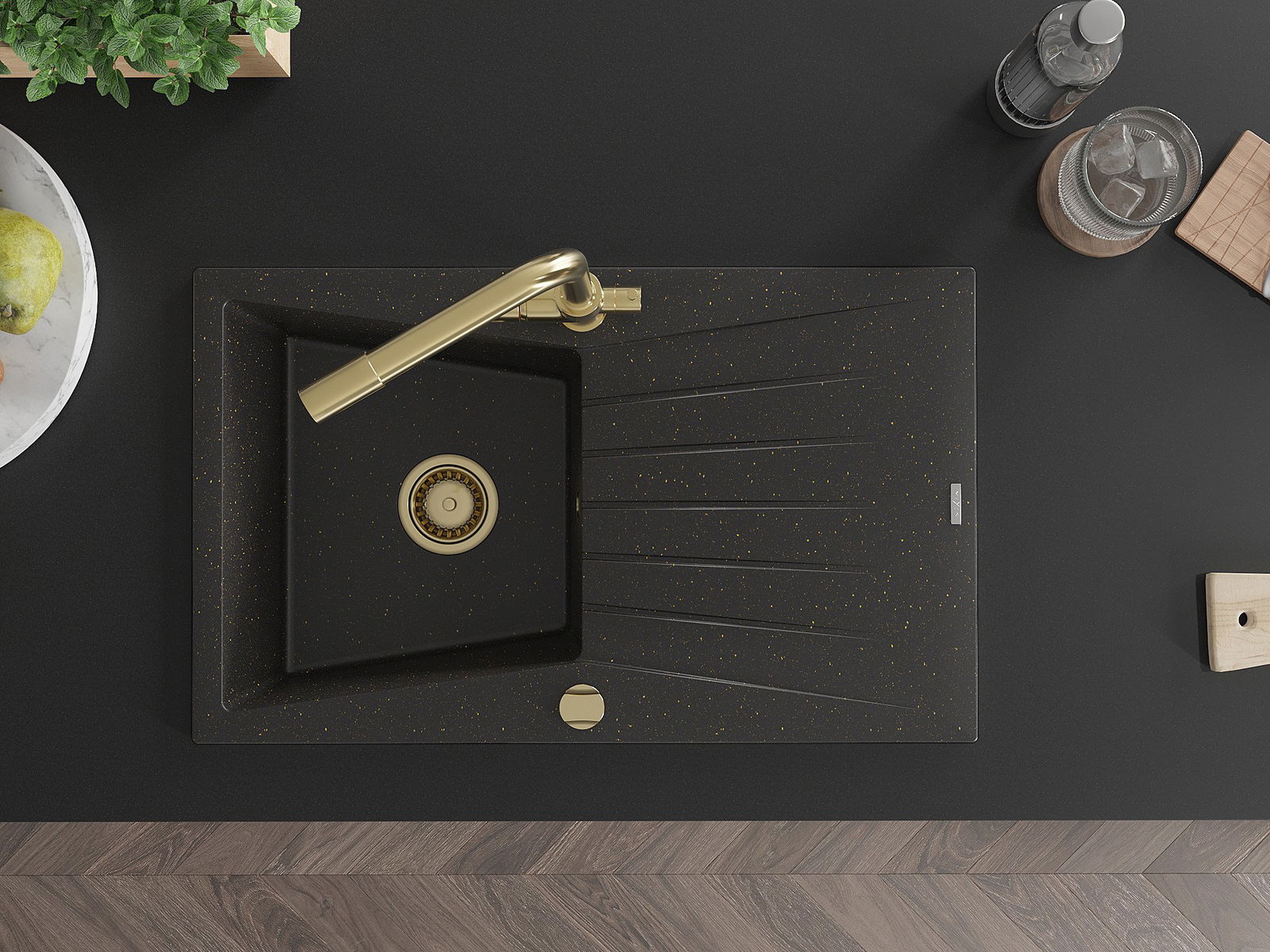 Mexen Cesar lavello in granito a 1 vasca con sgocciolatoio e rubinetto da cucina Duero, nero/oro metallizzato
