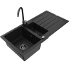 Mexen Andres lavello in granito 1,5 vasca con sgocciolatoio e rubinetto da cucina Telma, nero/argento - 6515-73-670200-70-B