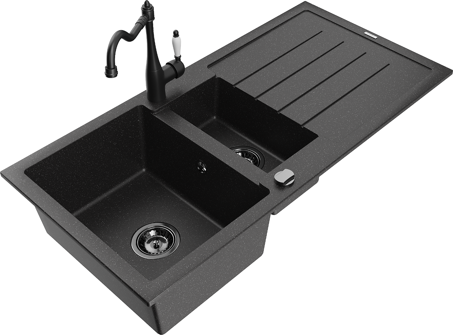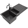 Mexen Andres lavello in granito 1,5 vasche con sgocciolatoio e miscelatore cucina Carla, nero/argento - 6515-73-670700-70-B