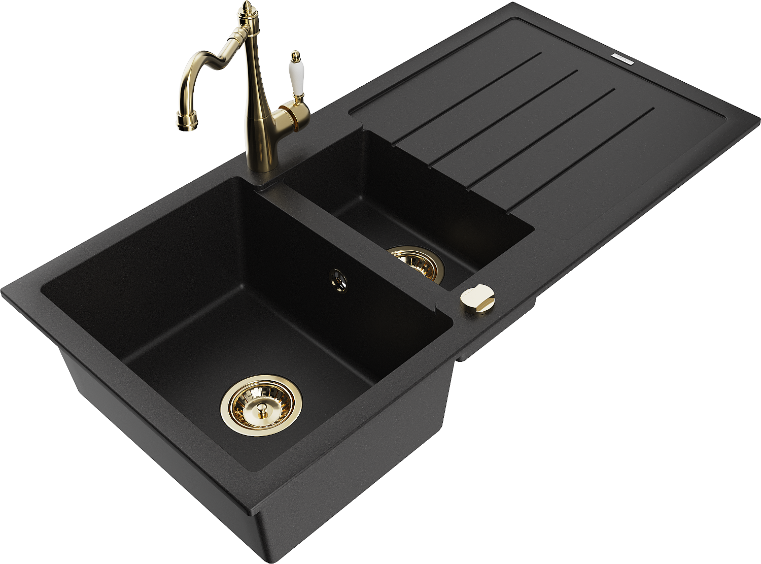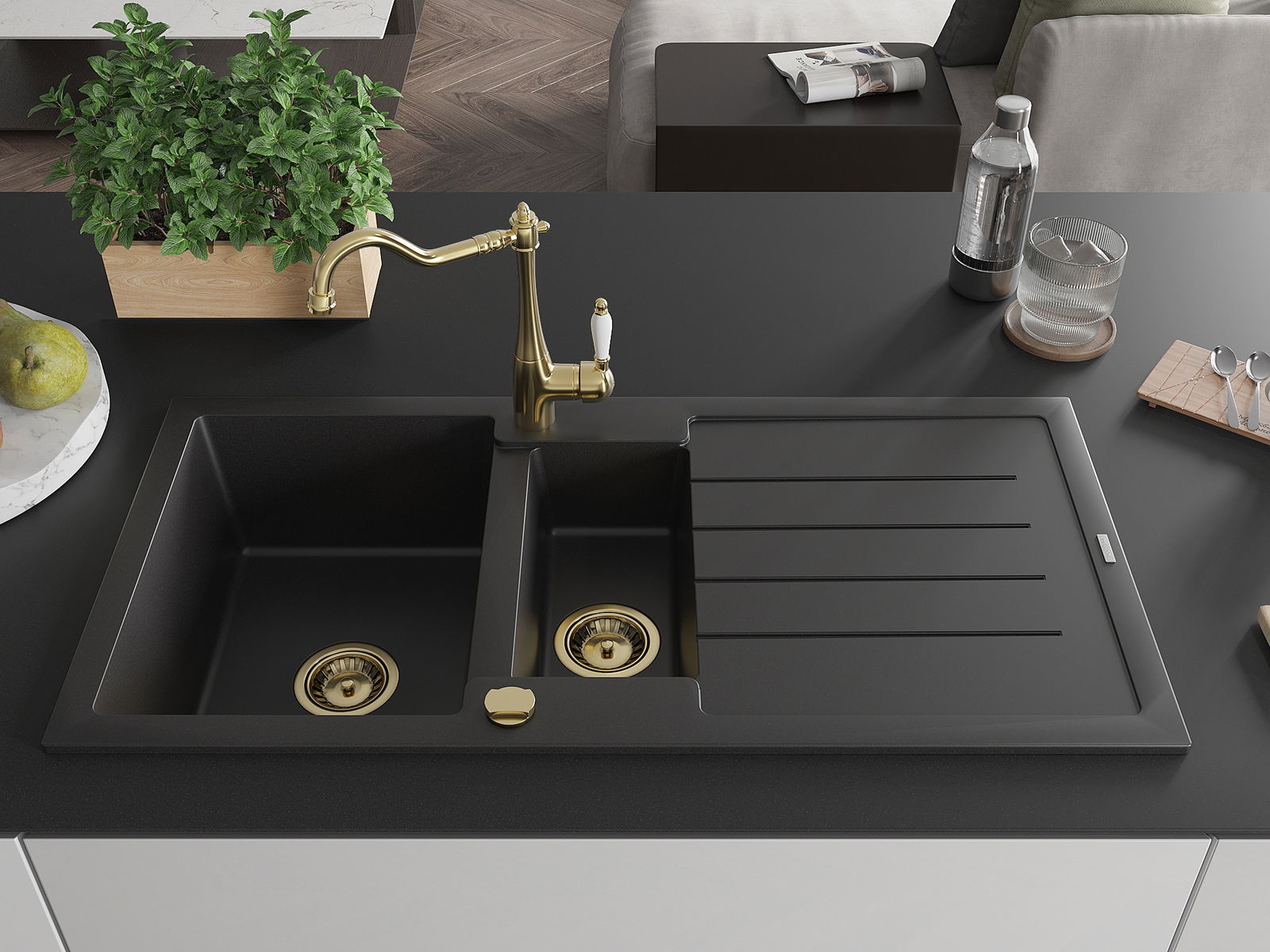 Mexen Andres lavello in granito 1,5 vasca con scolapiatti e miscelatore da cucina Carla, nero - 6515-77-670700-50
