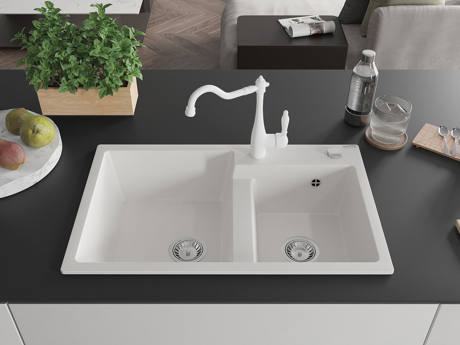 Il lavello è realizzato in granito di alta qualità. Rappresenta un complemento elegante e, soprattutto, pratico per ogni cucina, indipendentemente dal suo stile. L'alta qualità e la durata del granito garantiscono un utilizzo che dura per molti anni.