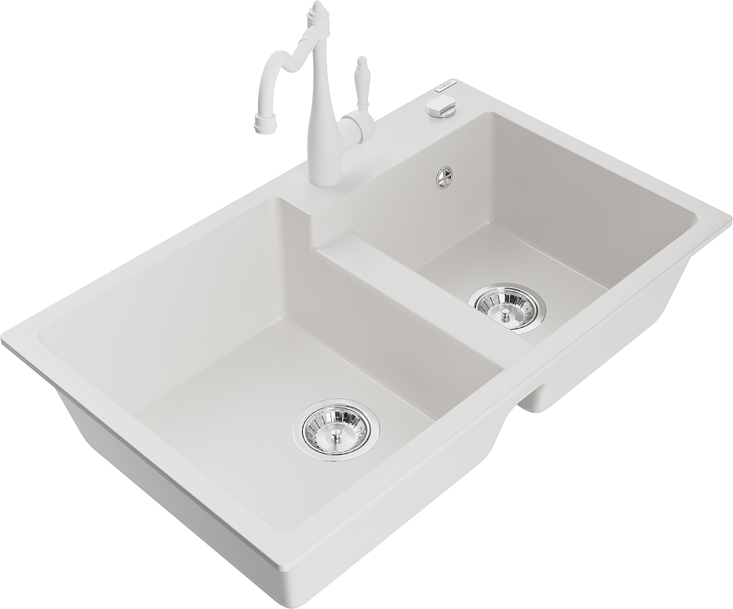 Mexen Tomas lavello in granito a 2 vasche con miscelatore da cucina Carla, bianco - 6516-20-670700-20