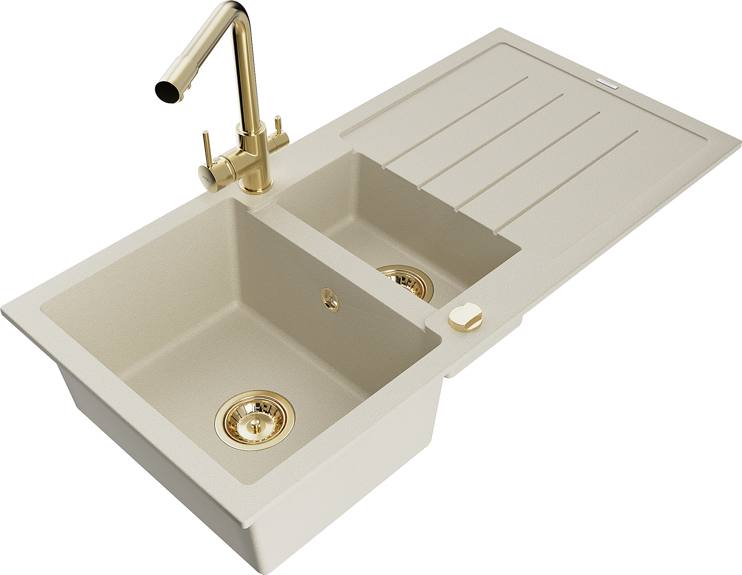 Mexen Andres lavello in granito 1,5 vasca con sgocciolatoio e miscelatore cucina Duero, beige - 6515-69-671600-50