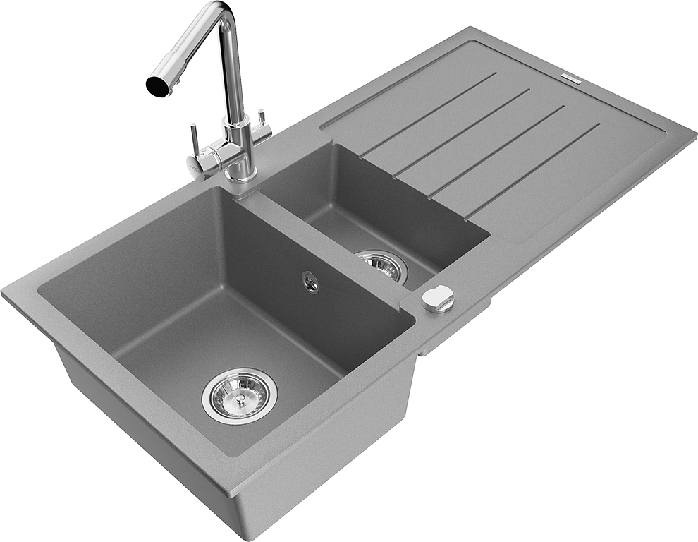 Mexen Andres lavello in granito 1,5 vasche con sgocciolatoio e miscelatore da cucina Duero, grigio - 6515-71-671600-00