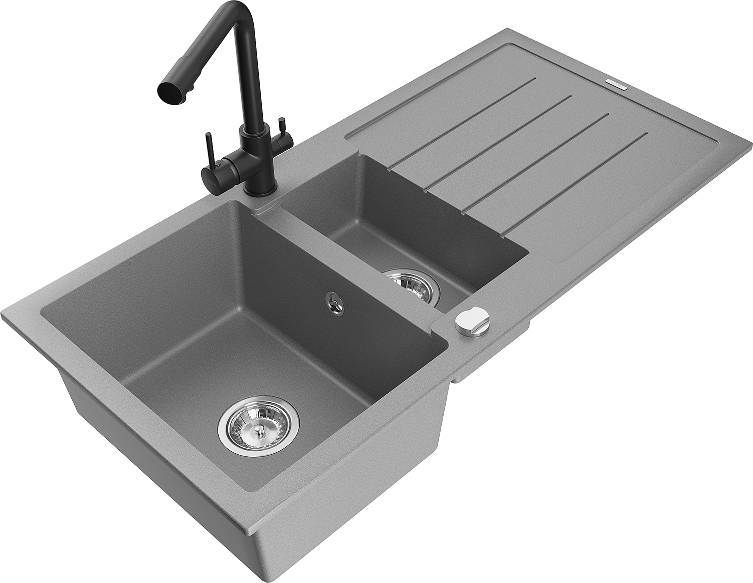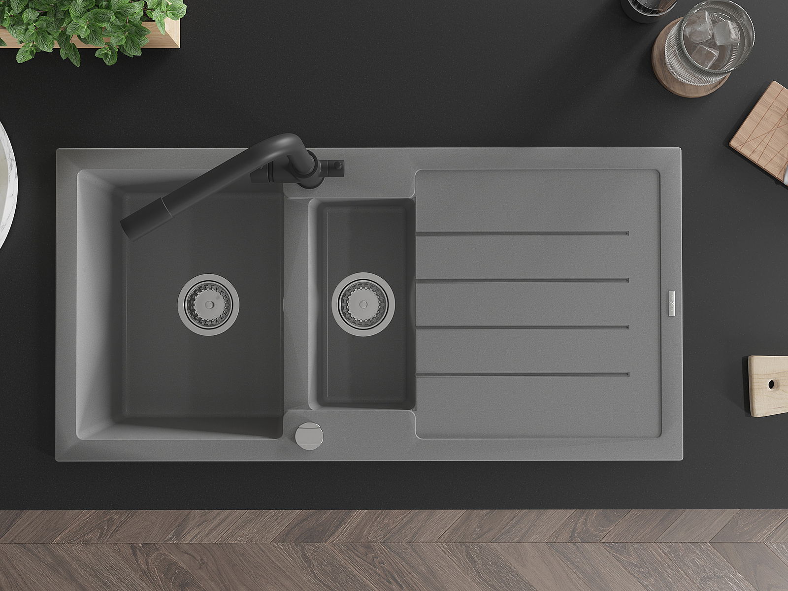 Mexen Andres lavello in granito 1,5 vasca con scolapiatti e rubinetto cucina Duero, grigio - 6515-71-671600-70
