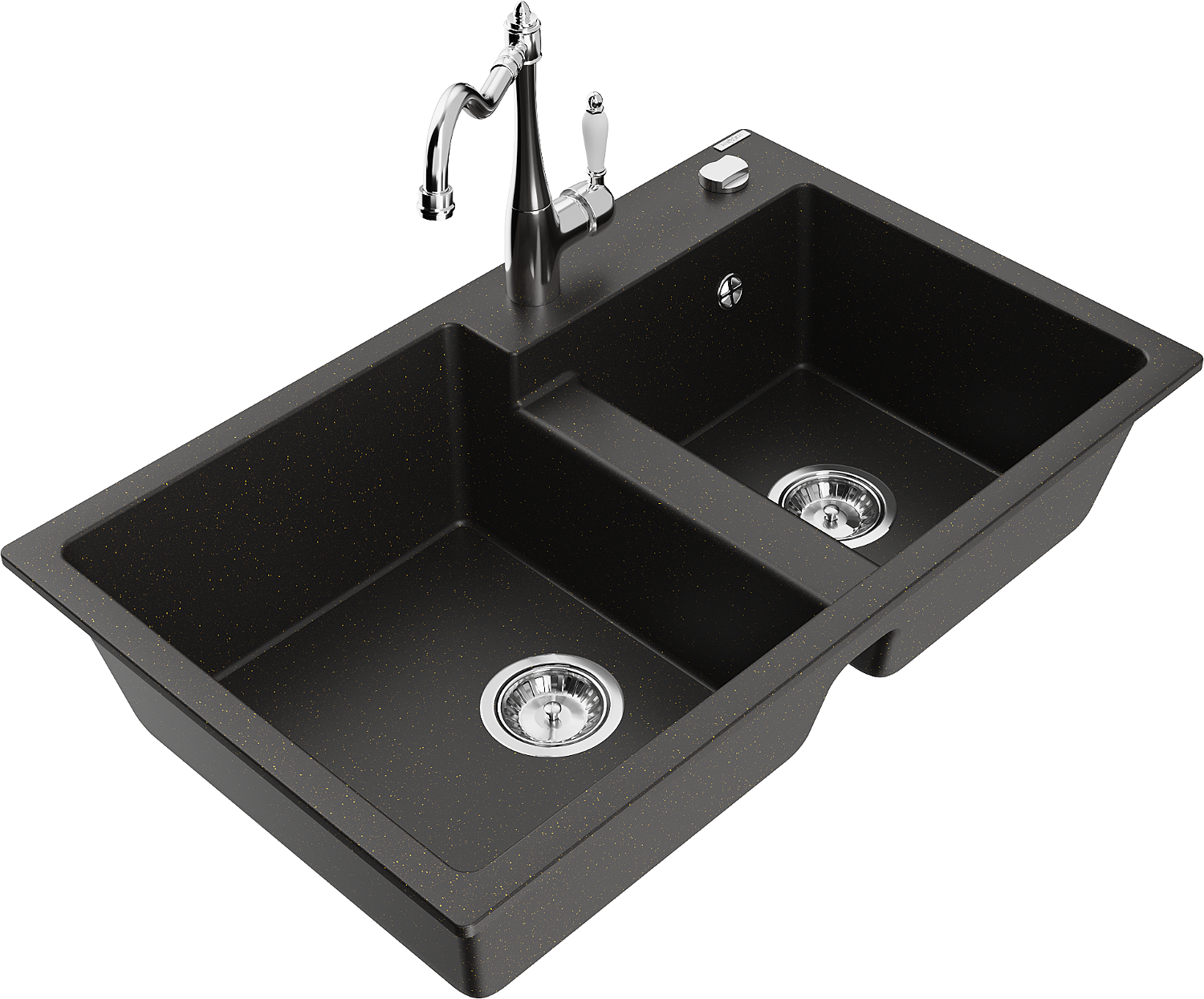 Mexen Tomas lavello da cucina in granito a 2 vasche con miscelatore cucina Carla, nero/metallo dorato - 6516-75-670700-00