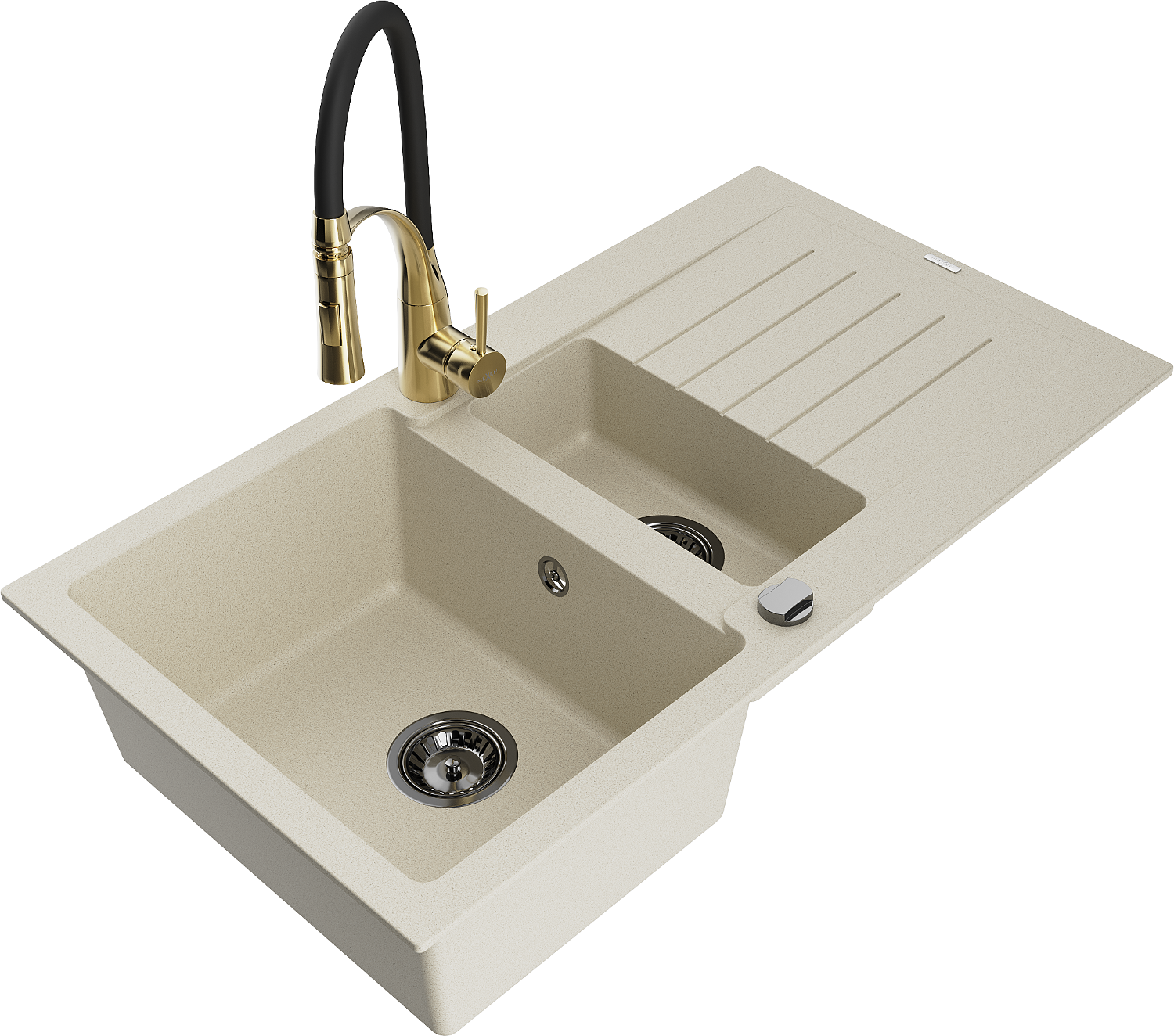 Mexen Matias lavello in granito 1,5 vasca con scolapiatti e rubinetto da cucina Aster, beige - 6502-69-73450-57-B