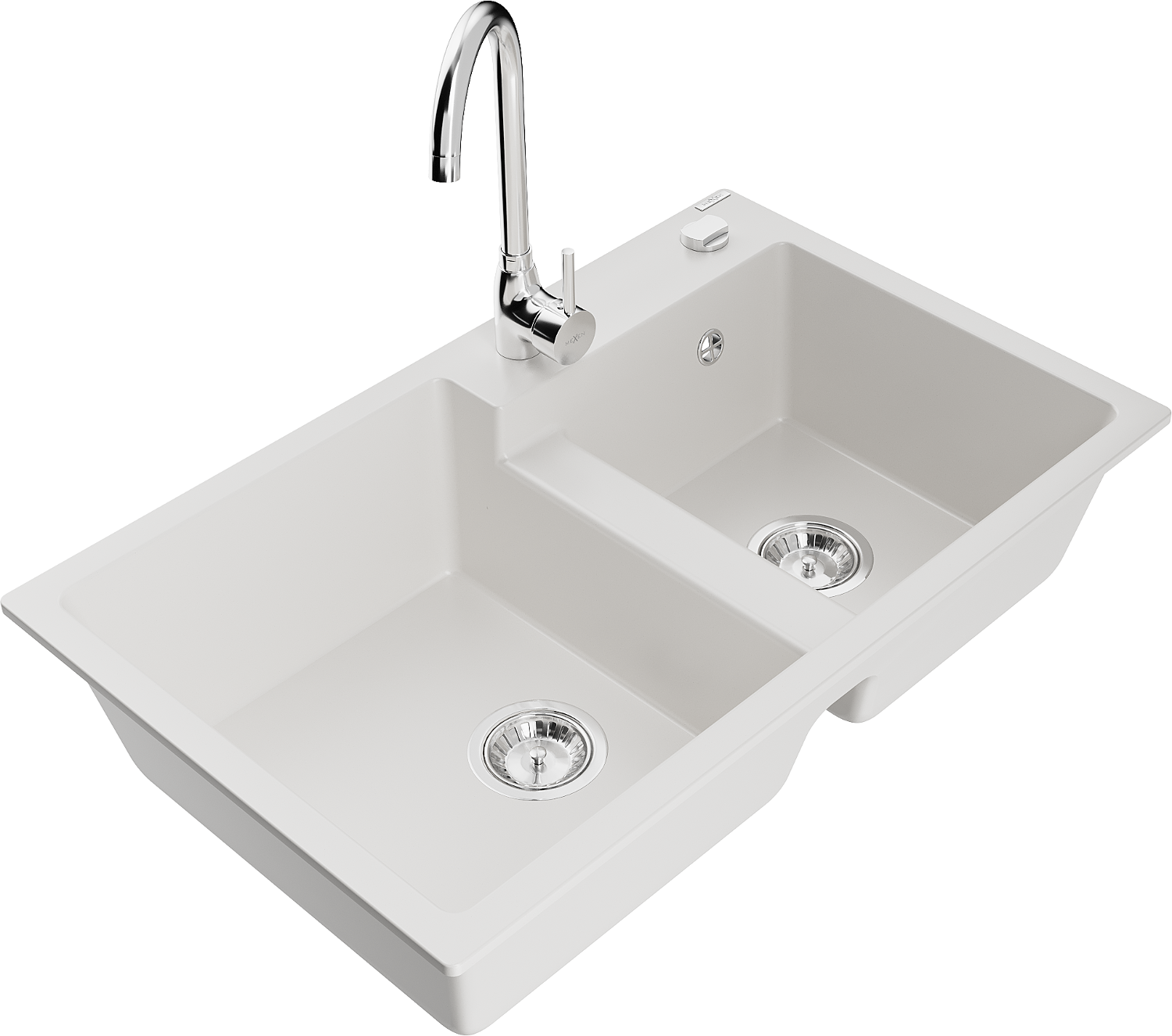 Mexen Tomas lavello da cucina in granito a 2 vasche con rubinetto Telma, bianco - 6516-20-670200-00
