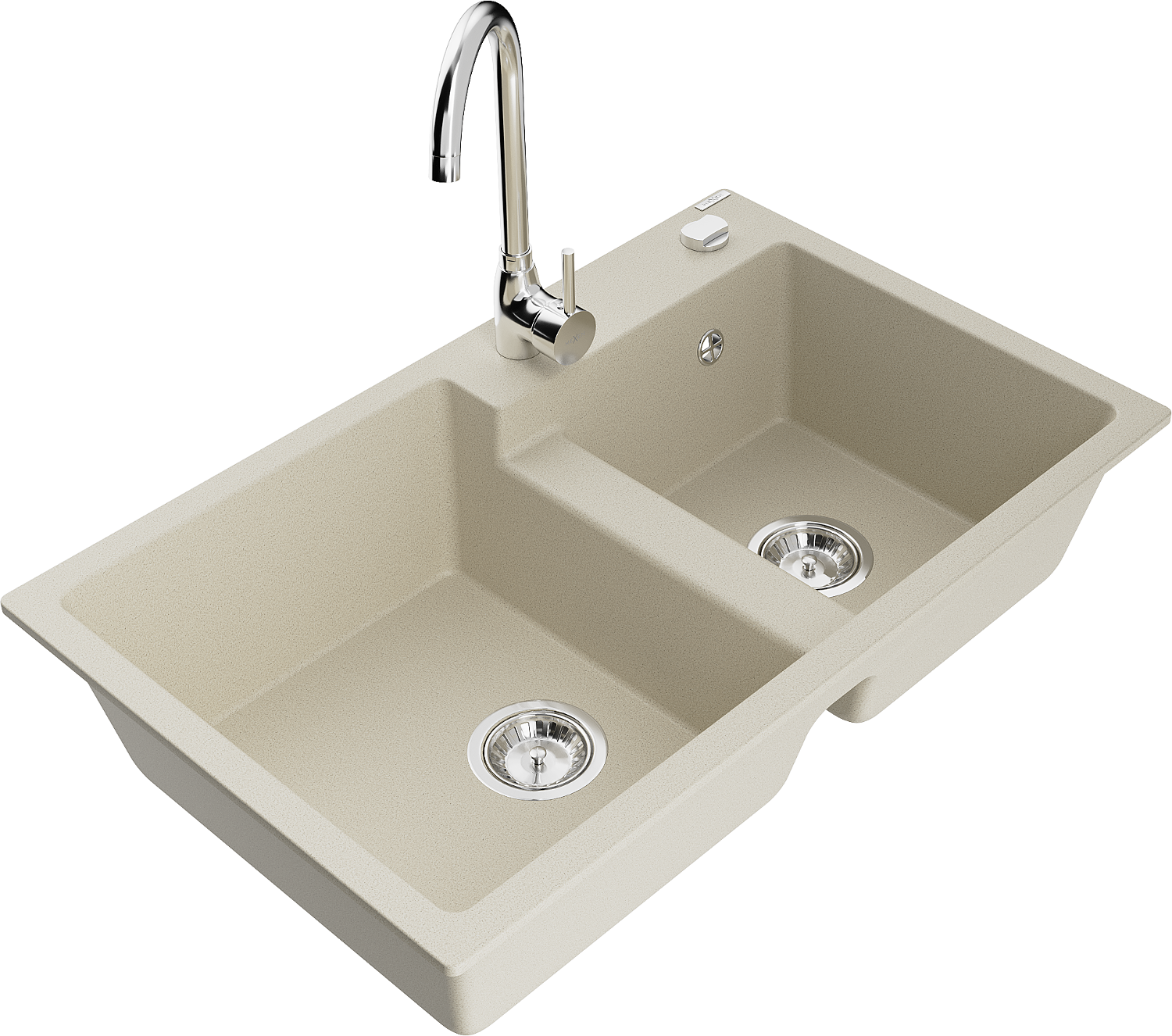 Mexen Tomas lavello in granito a 2 vasche con miscelatore da cucina Telma, beige - 6516-69-670200-00
