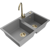 Mexen Tomas lavello da cucina in granito a 2 vasche con rubinetto Telma, nero/metallo argentato - 6516-73-670200-50