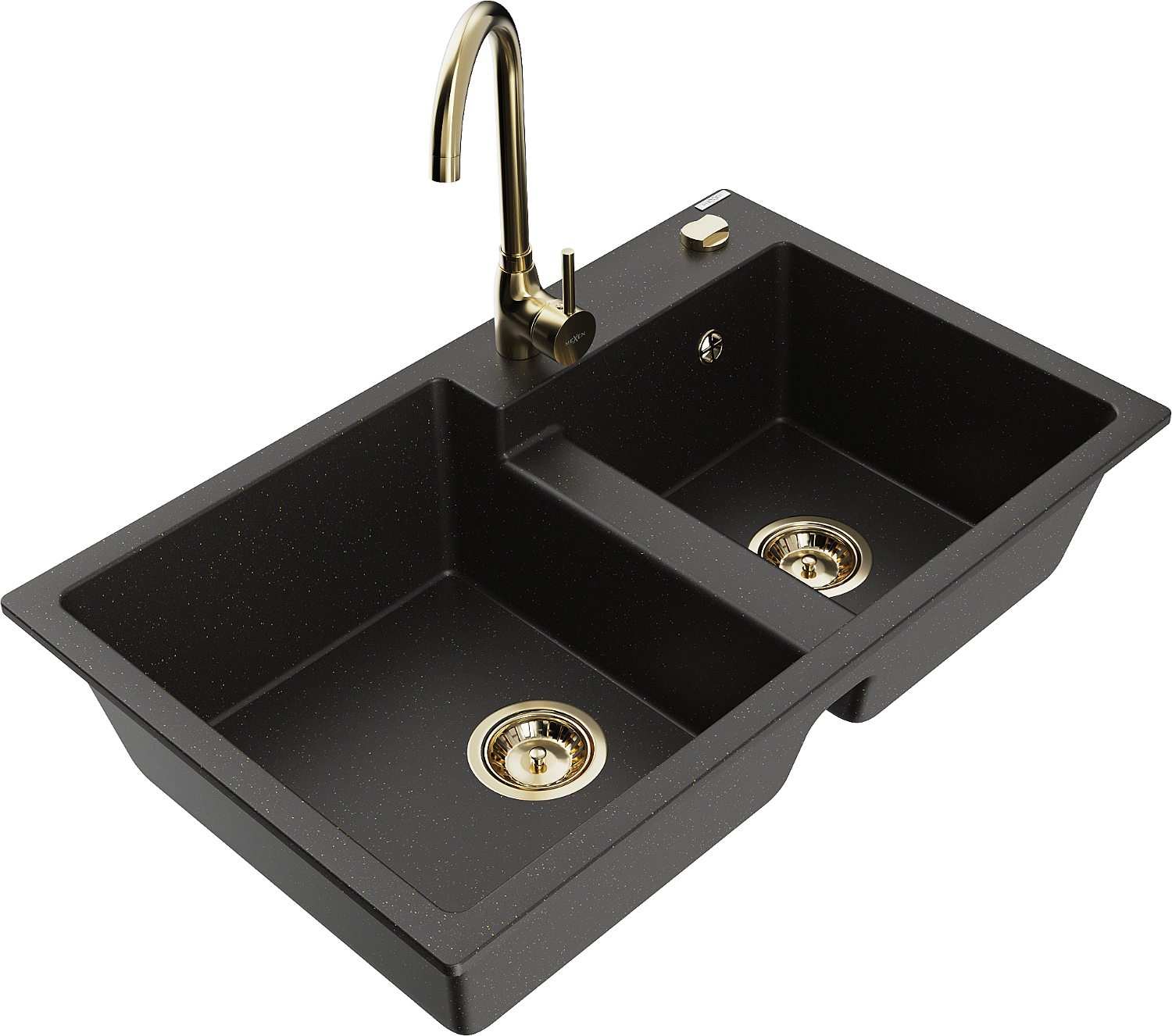 Mexen Tomas lavello in granito a 2 vasche con rubinetto da cucina Telma, nero/oro metallizzato - 6516-75-670200-50