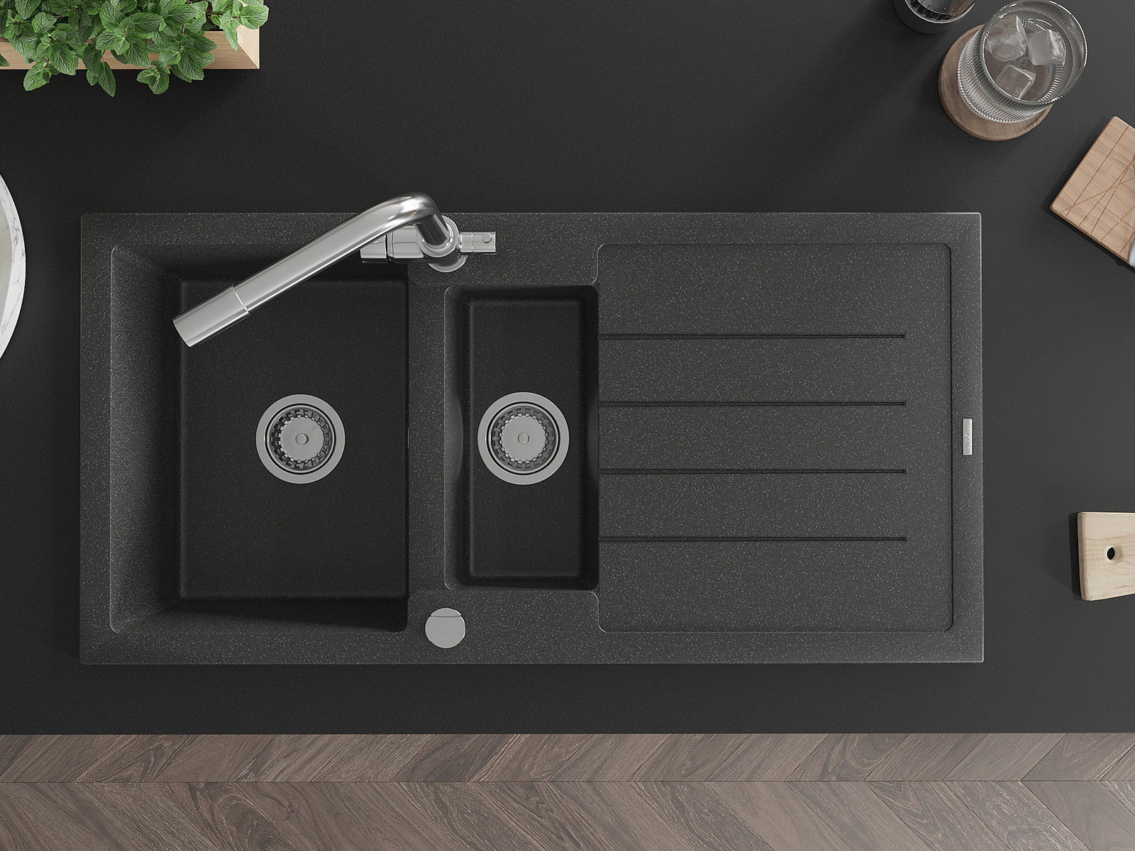 Mexen Andres lavello in granito 1,5 vasca con scolapiatti e miscelatore cucina Duero, nero maculato - 6515-76-671600-00