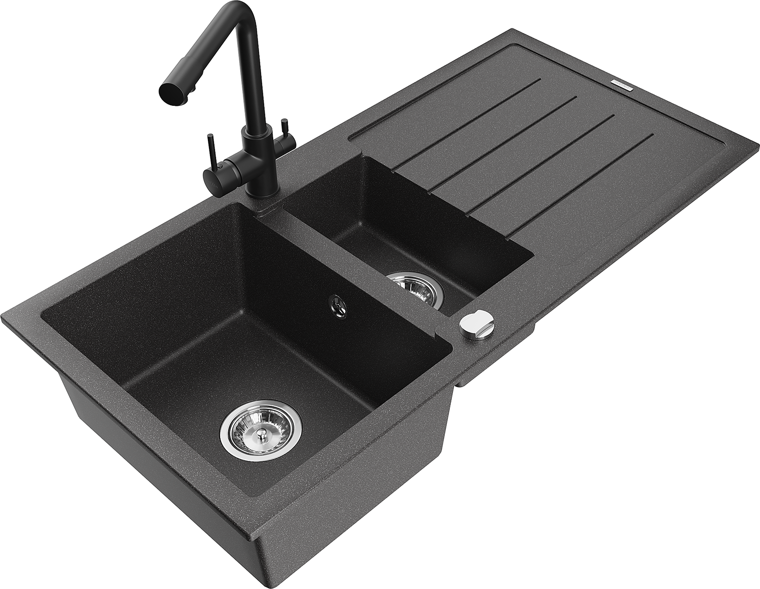 Mexen Andres lavello in granito 1,5 vasche con sgocciolatoio e miscelatore cucina Duero, nero maculato - 6515-76-671600-70
