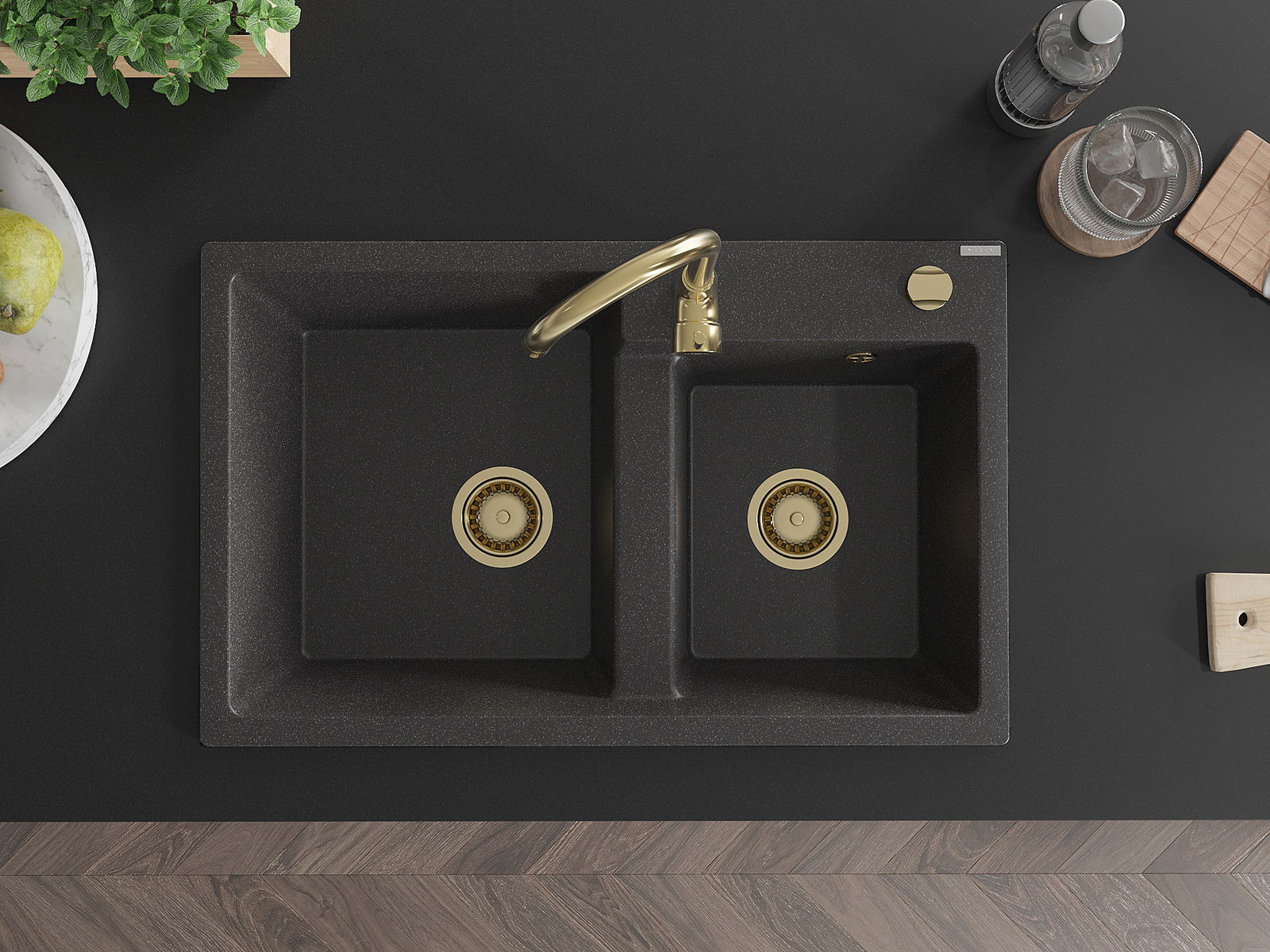 Mexen Tomas lavello in granito a 2 vasche con rubinetto cucina Telma, nero maculato - 6516-76-670200-50