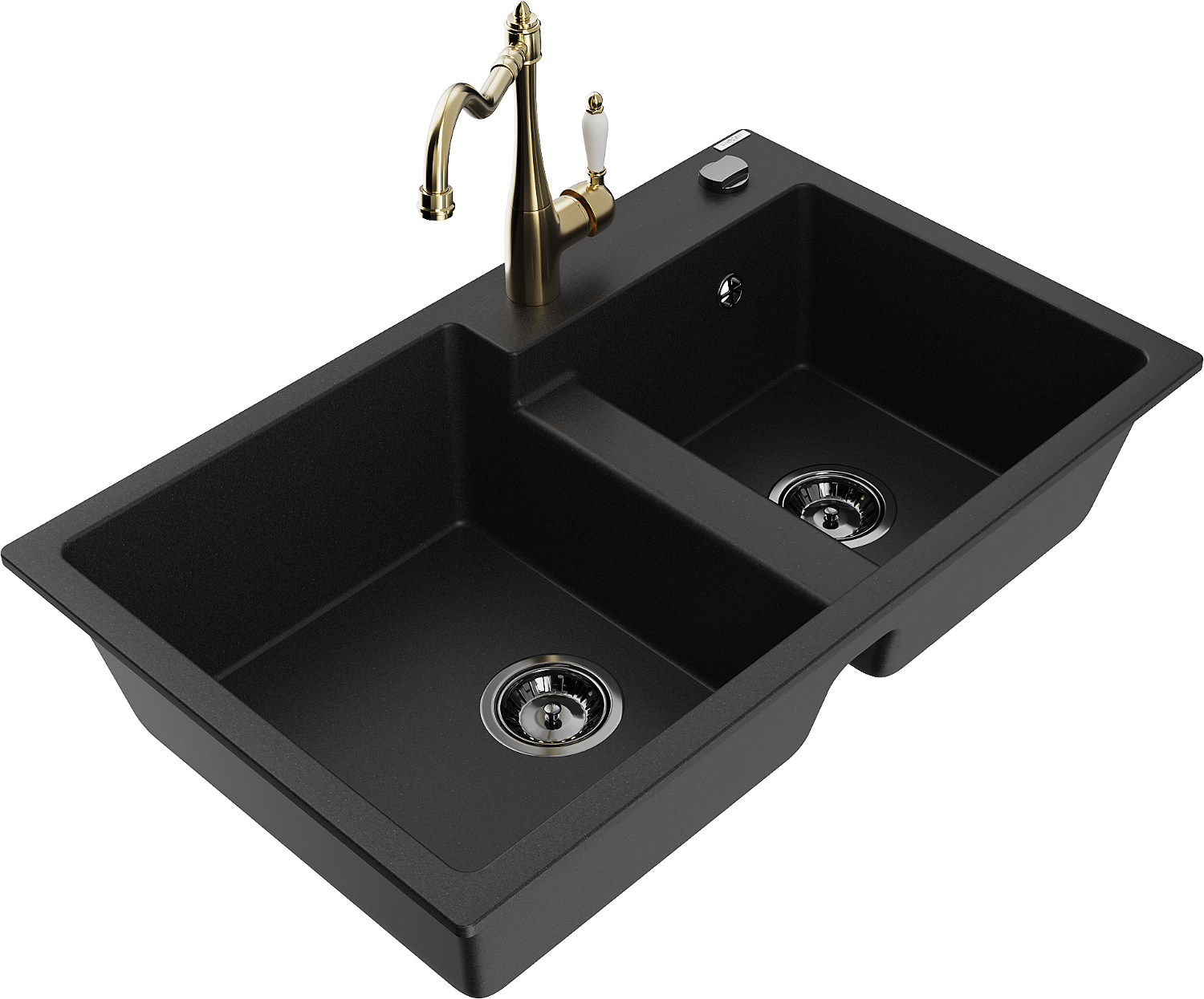 Mexen Tomas lavello da cucina in granito a 2 vasche con miscelatore cucina Carla, nero - 6516-77-670700-50-B