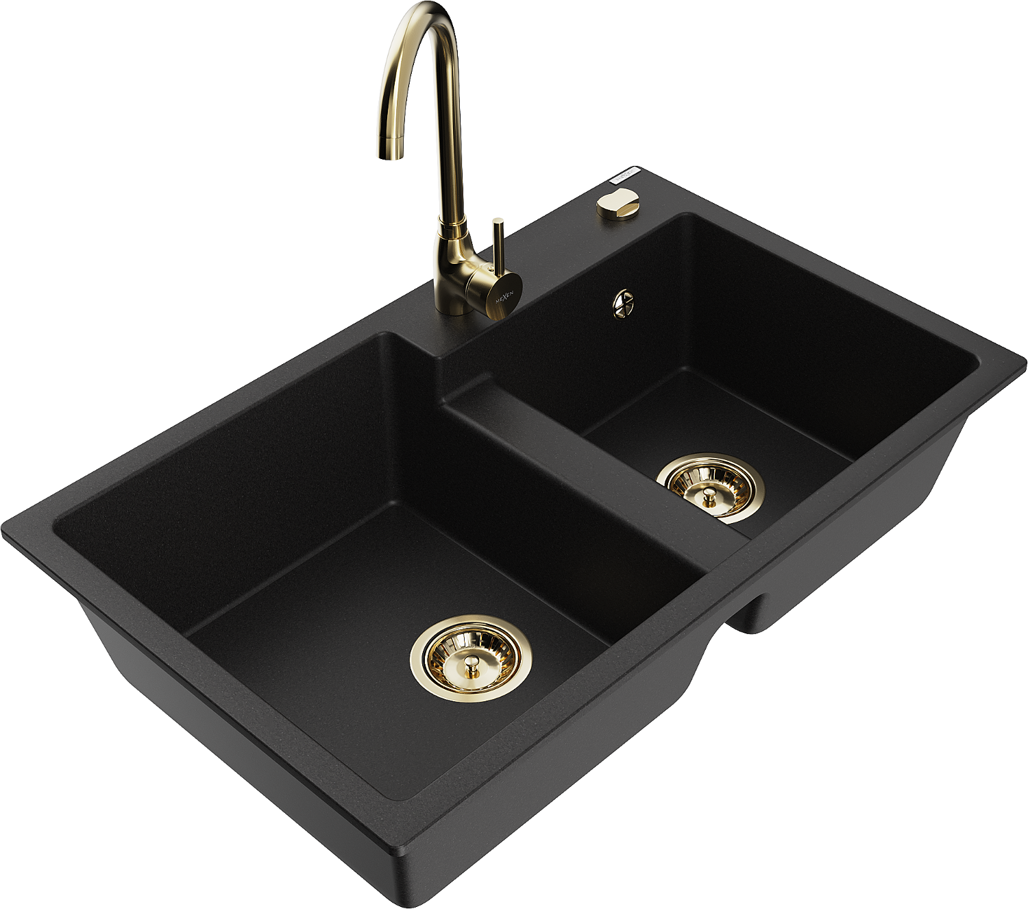 Mexen Tomas lavello da cucina in granito a 2 vasche con rubinetto Telma, nero - 6516-77-670200-50