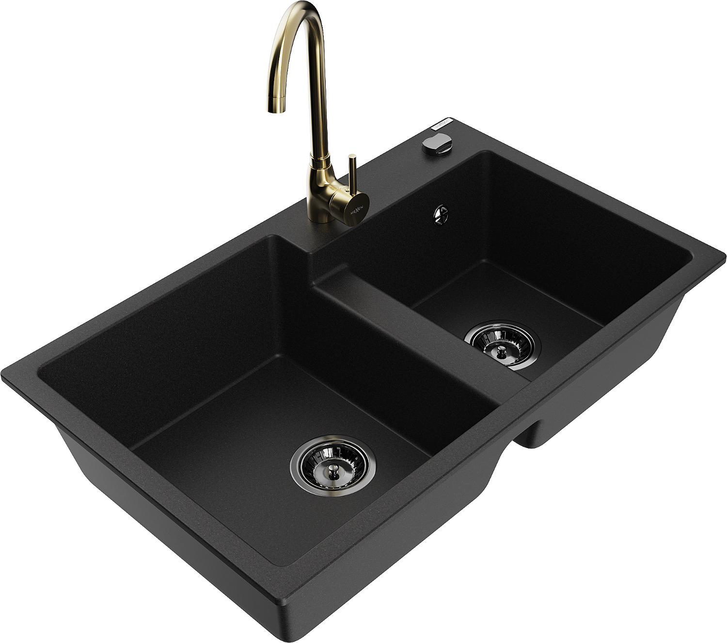 Mexen Tomas lavello da cucina in granito a 2 vasche con rubinetto Telma, nero - 6516-77-670200-50-B