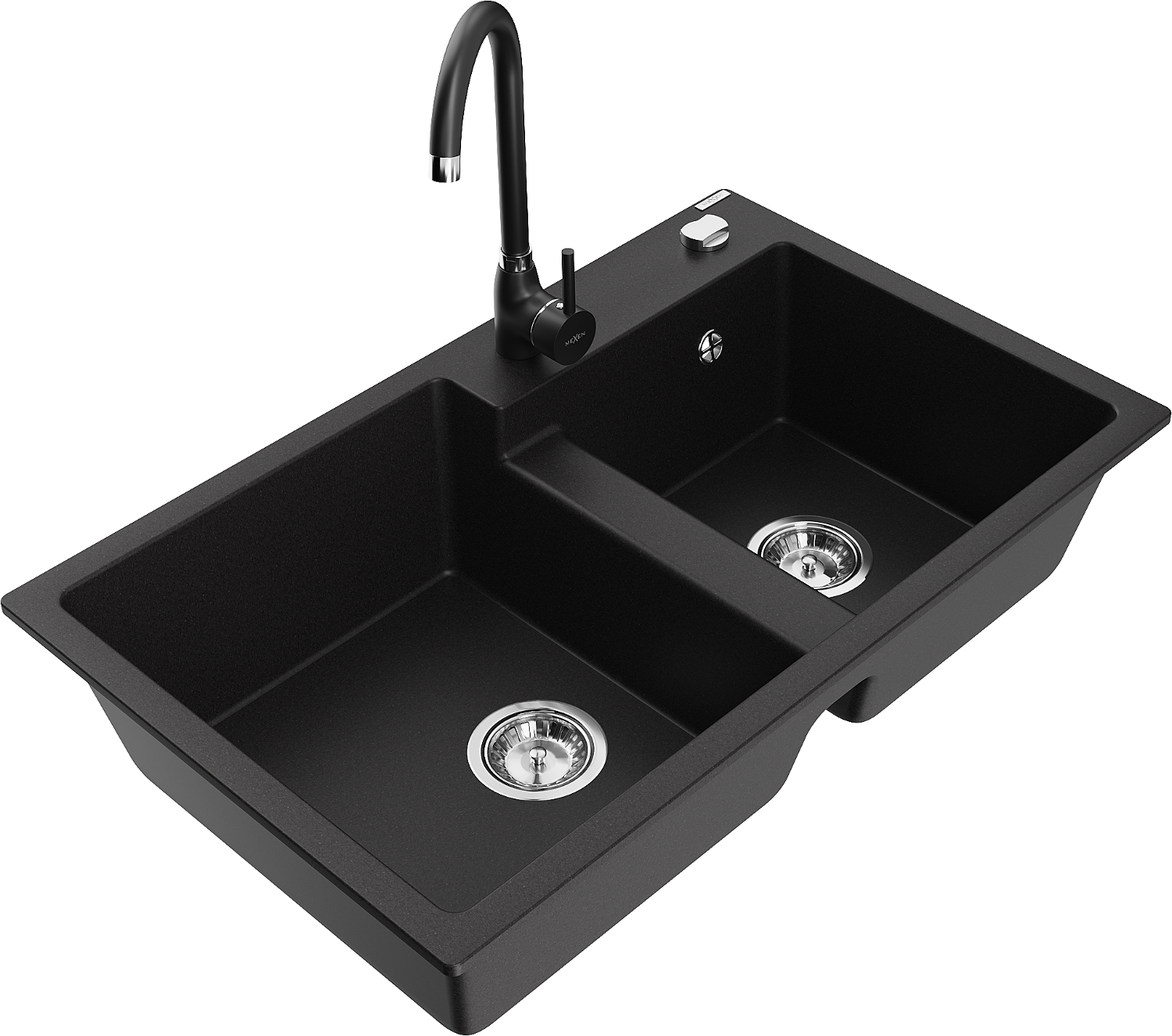 Mexen Tomas lavello in granito a 2 vasche con miscelatore da cucina Telma, nero - 6516-77-670200-70