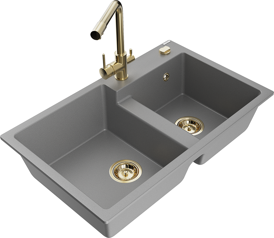 Mexen Tomas lavello da cucina in granito a 2 vasche con rubinetto Duero, grigio - 6516-71-671600-50