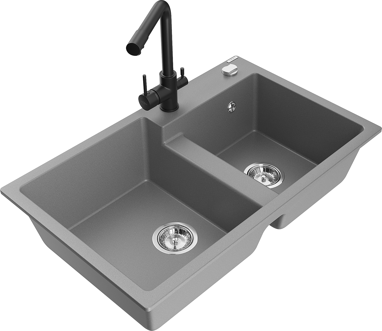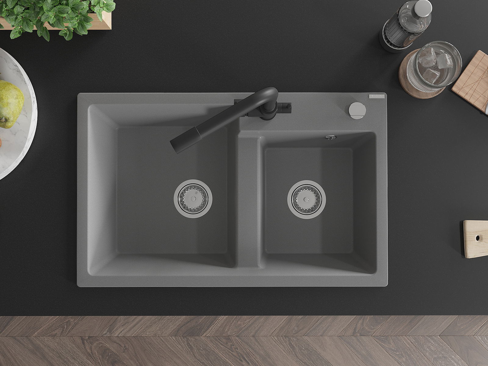 Mexen Tomas lavello da cucina in granito a 2 vasche con rubinetto Duero, grigio - 6516-71-671600-70
