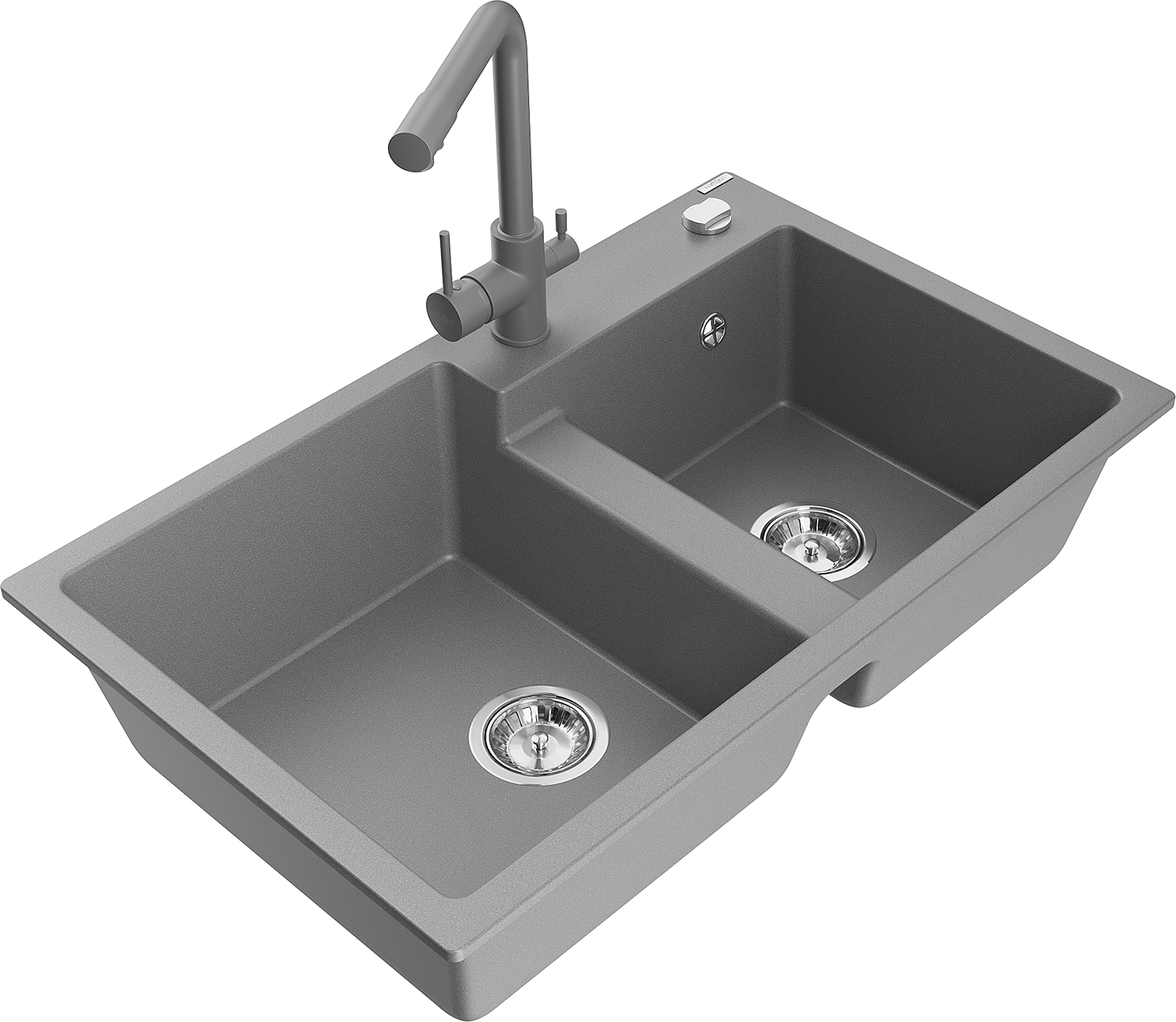 Mexen Tomas lavello in granito a 2 vasche con miscelatore cucina Duero, grigio - 6516-71-671600-71