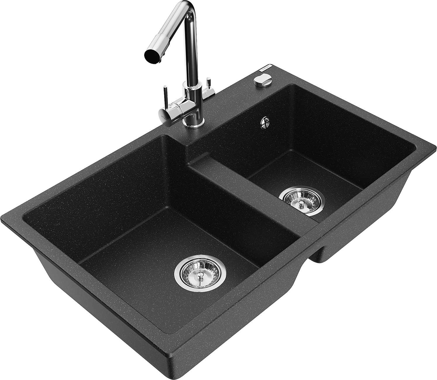 Mexen Tomas lavello in granito a 2 vasche con rubinetto da cucina Duero, nero/argento metallizzato - 6516-73-671600-00