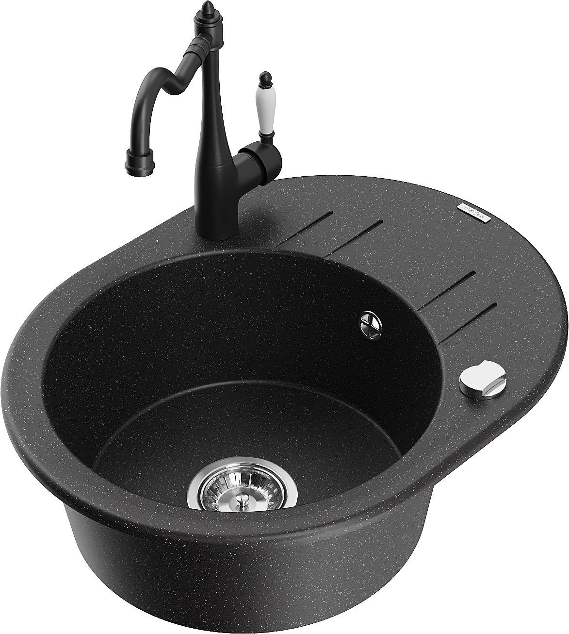 Mexen Kevin lavello in granito a 1 vasca con scolapiatti e rubinetto da cucina Carla, nero/argento metallico - 6517-73-670700-70